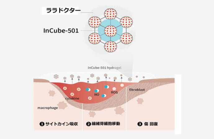 炎症物質を抜いて(−)、コラーゲンを充填する